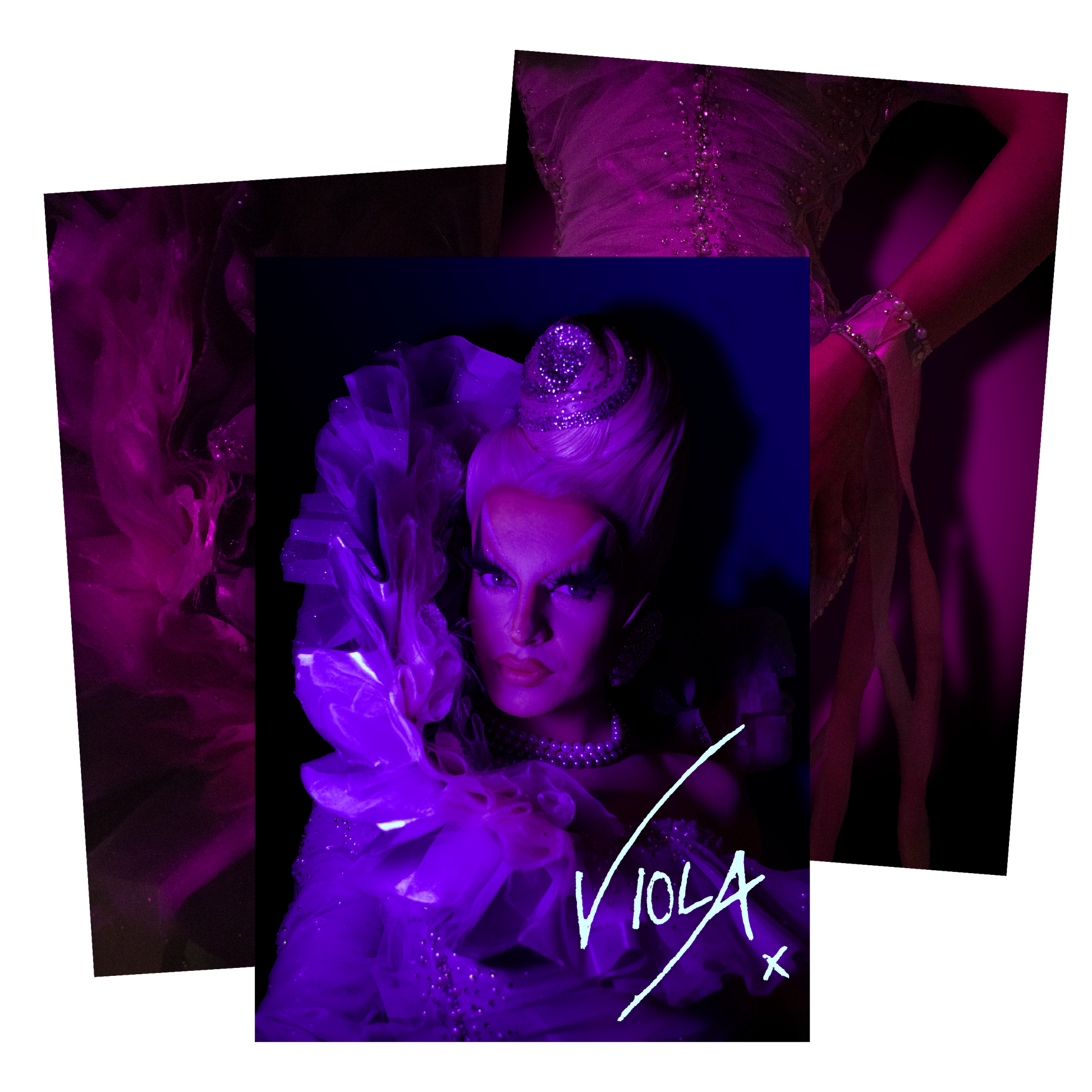 A collection of prints from RuPaul's Drag Race UK Season 7's Viola. Only the main image in this collection is signed. 12x8" in size.